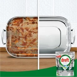 De Dreft Platinum All in One vaatwascapsules leveren een grondige reinigingsactie en reinigen zelfs de hardnekkigste vlekken om je vaat te laten schitteren. Dankzij de reinigingskracht van Dreft Platinum kun je in alle vertrouwen koken wat je wilt, want het haalt zelfs het vet uit je filter, voor een schone vaat en een frisse vaatwasser. Dreft combineert vloeistof en poeder in één krachtige capsule. Het ultra-oplosbare zakje lost snel op, zodat het snel begint te reinigen om de klus klaar te krijgen. En ze zijn gemakkelijk te gebruiken. Plaats ze gewoon in het doseerbakje van je vaatwasser, met verpakking.