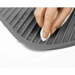 De Flume afdruipmatten van Joseph Joseph zijn opnieuw ontworpen met een nieuw design. De handige afdruipmatten zijn er in twee maten, large en small, en in twee kleuren, groen en grijs. Het materiaal is een soft rubber zodat je na gebruik de afdruipmat makkelijk leegt en droogt. Je pakt de afdruipmat makkelijk op door de afgeronde hoeken. Deze Flume Large grijze afdruipmat van Joseph Joseph heeft een afmeting van 31cm x 43,5cm. Reinigen mag alleen met de hand afwas. De mat is door de samenstelling van soft rubber geschikt voor porselein, aarde- en glaswerk.