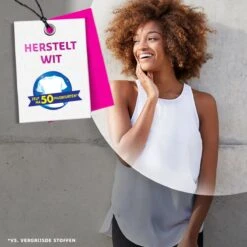 Breng je witte kleding weer tot leven met Vanish Oxi Action, de bleekvrije whitening booster voor jouw wasgoed!