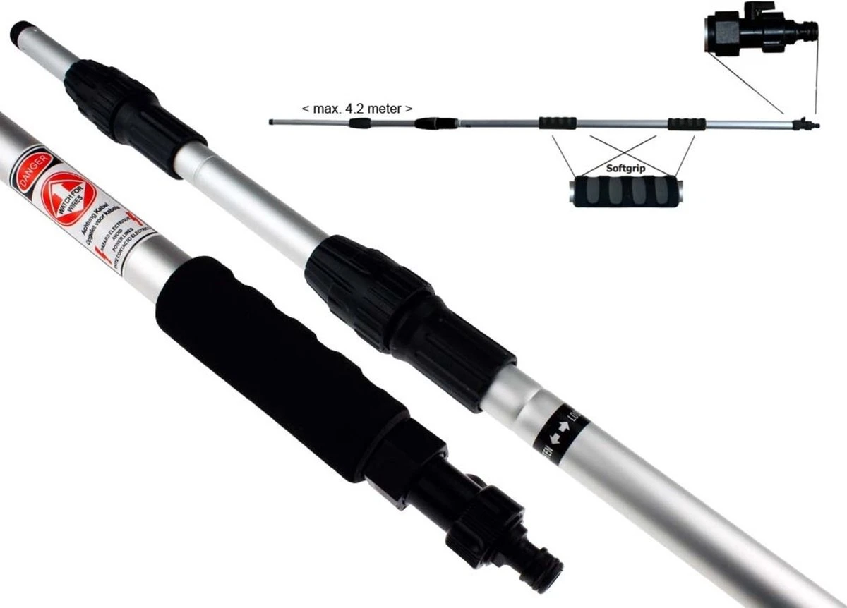 Met Gardena aansluiting en schroefdraad passend op de zonnepaneel- en autowasborstels.