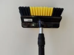 Autowasborstel of Zonnepaneelwasborstel met waterdoorvoer. De zachte, gepluimde PBT vezel van 0,25mm dik en 55mm lang is uitstekend geschikt voor het wassen van auto’s, zonnepanelen en andere gevoelige, waterbestendige oppervlakken.
